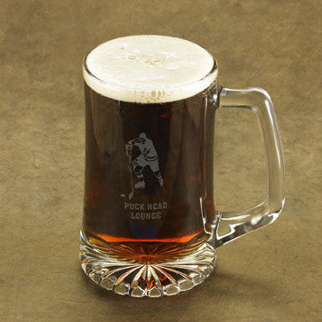 Drink a toast to your favorite pastime with our sturdy 25 ounce personalized Iconic Sports Mug. These gracefully shaped glass mugs are laser-etcheded and hold a hefty helping of your favorite brew and make an attractive addition to your home bar. Choose one of our detailed images and add your own creative personalization. Buy one or a whole set for you and the gang! Select icon and personalize with two lines of up to 15 characters per line.